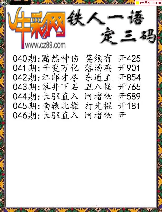 首页 > 福彩3D图谜 > 福彩3D2026046期铁人一句定三码字图谜